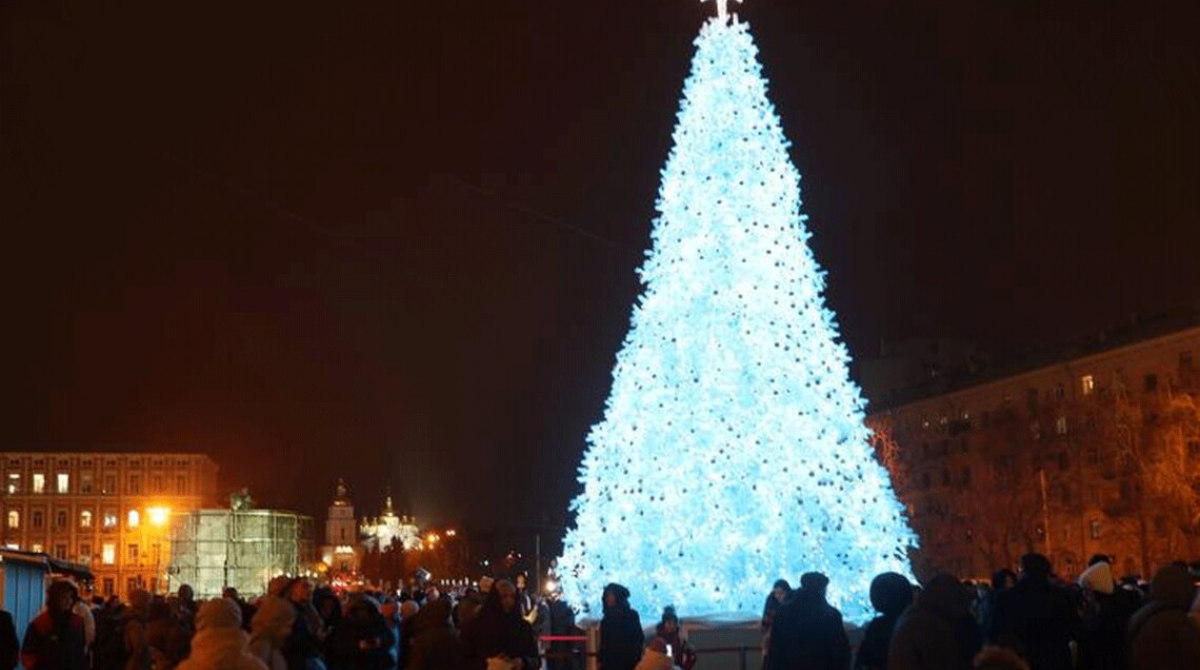 У день Святого Миколая на Софійській площі столиці запалили вогні на головній ялинці країни. Вона прикрашена у біло-блакитних тонах. Також поряд розмістили фотозону.