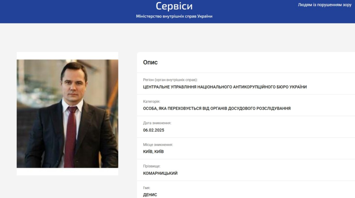 Національне антикорупційне бюро розпочне процедуру оголошення в міжнародний розшук бізнесмена, колишнього депутата Київської міської ради Дениса Комарницького, якого журналісти знайшли за кордоном.