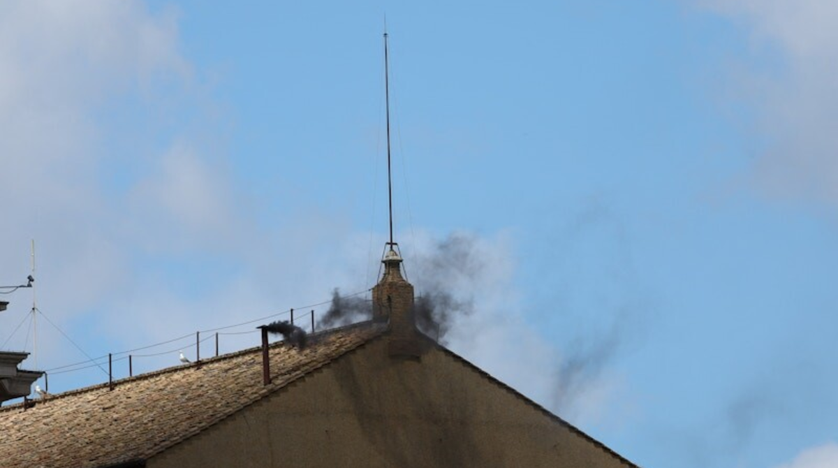 Black smoke billows from the chimney above the Sistine Chapel, meaning the 133 Cardinal electors have not yet chosen a new Pope. pic.twitter.com/H5U1AxIIky