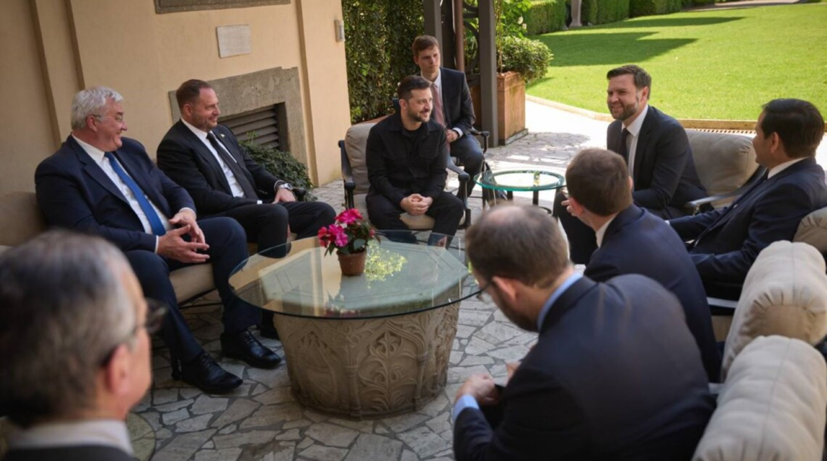 Президент Володимир Зеленський у неділю, 18 травня, провів зустріч із віцепрезидентом США Джей Ді Венсом і держсекретарем Марко Рубіо в Римі.