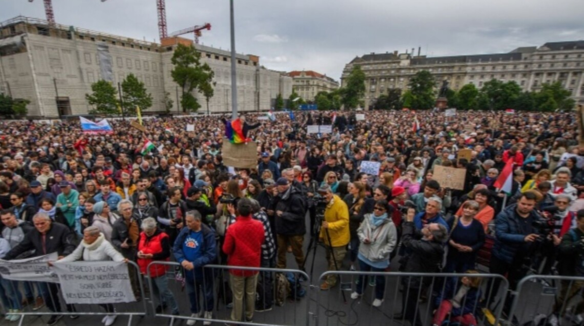 Тисячі угорців у неділю, 18 травня, вийшли на протест у Будапешті. Вони виступили проти законопроєкту, спрямованого проти громадських організацій і незалежних ЗМІ.