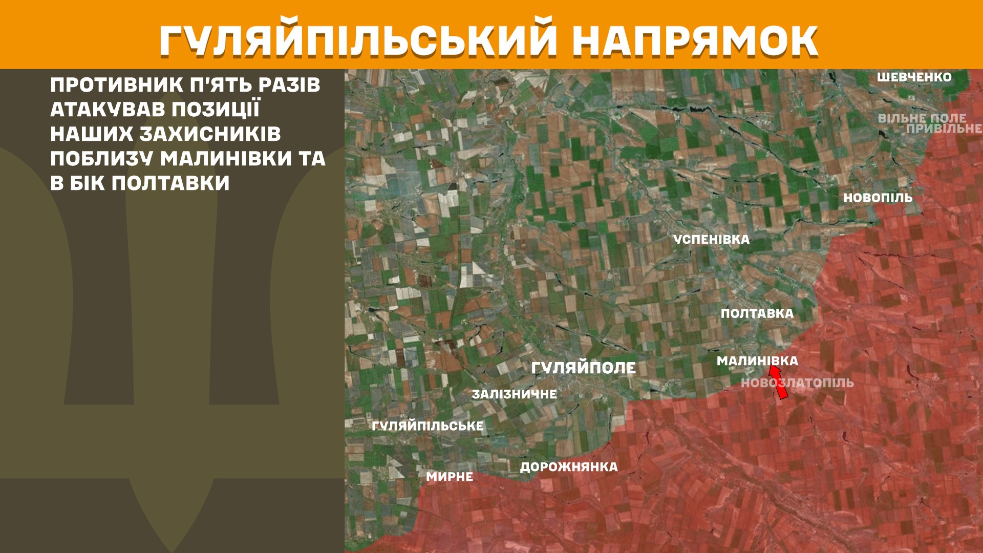 На Гуляйпільському напрямку ворог 5 разів атакував позиції наших захисників поблизу Малинівки та в бік Полтавки.