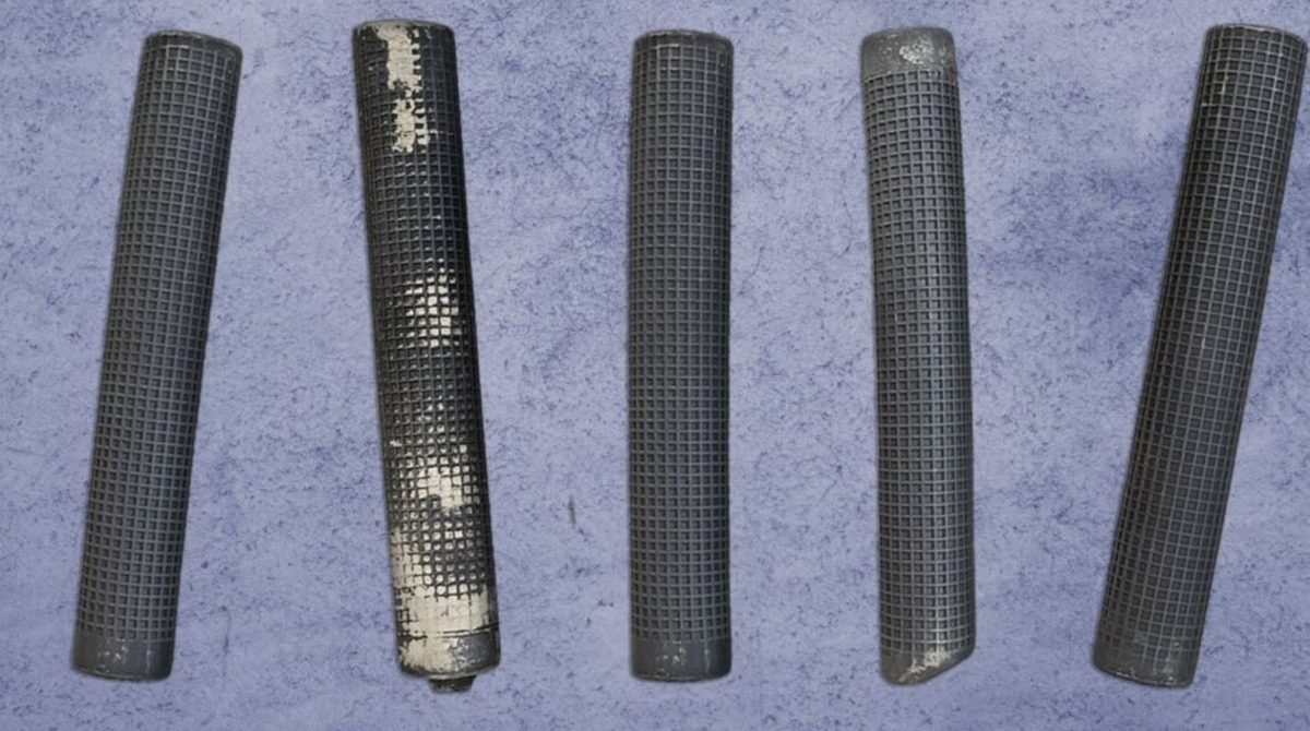 Боєприпаси схожі на трубу з квадратними насічками на корпусі. Діаметр близько 5 см, довжина 35-40 см.