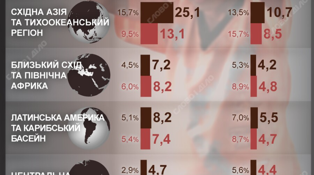 На четвертому місці — Близький Схід та Північна Африка: 8,2 млн дітей у 2024 році (зростання на 1 млн за 4 роки), або 6% світового показника.