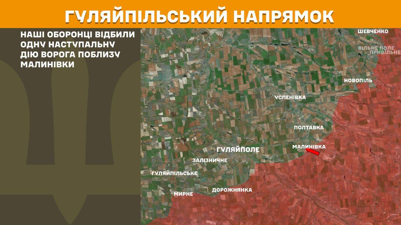 На Гуляйпільському напрямку українські сили відбили одну атаку біля Малинівки.