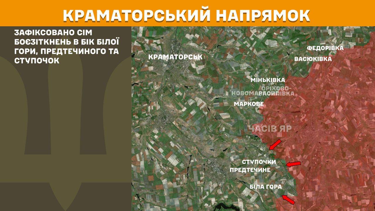 На Краматорському напрямку зафіксовано сім зіткнень поблизу Білої Гори, Предтечиного та Ступочок.