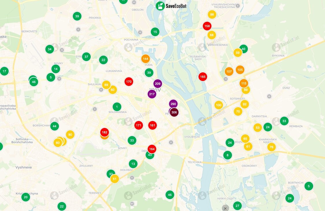 Наразi найвищий показник у столицi становить 281. Iндекс понад 200 також вказує на небезпечний рiвень забруднення повiтря. Найгірша ситуація в Печерському районі. Поточна вологість повітря становить 61%.