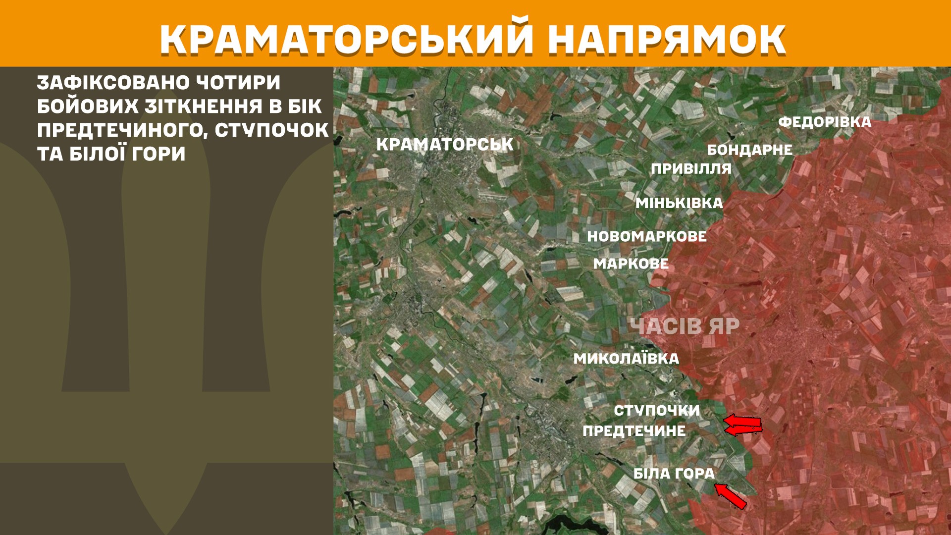 На Краматорському напрямку відбулося 4 бойових зіткнення в бік Предтечиного, Ступочок та Білої Гори.