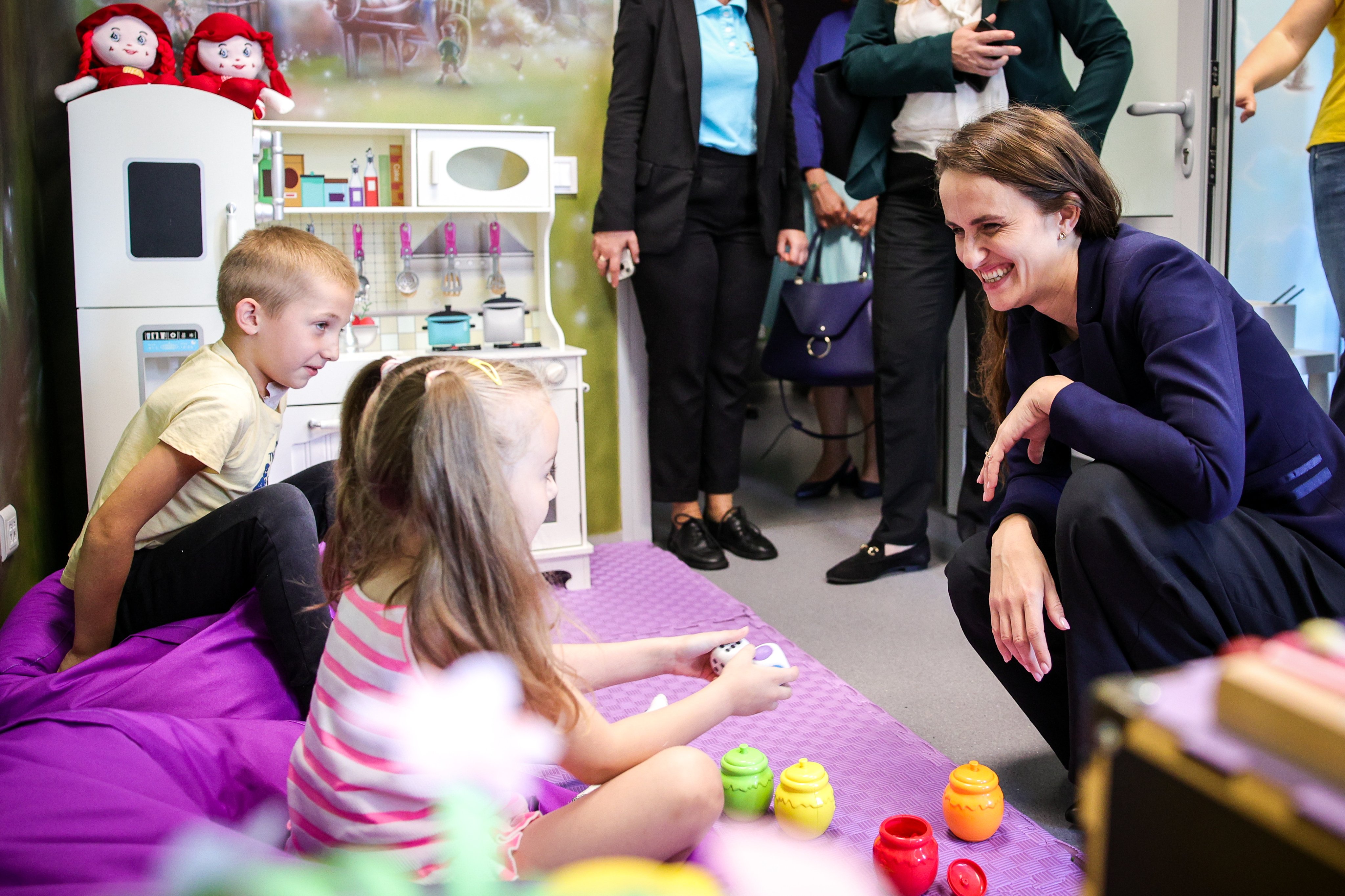 Одобеску розпочала день з візиту до дитячої лікарні «Охматдит», яку рік тому цілеспрямовано обстріляли російські війська. Вона назвала цю атаку «жахливим воєнним злочином, що сколихнув світ і не залишиться безкарним».