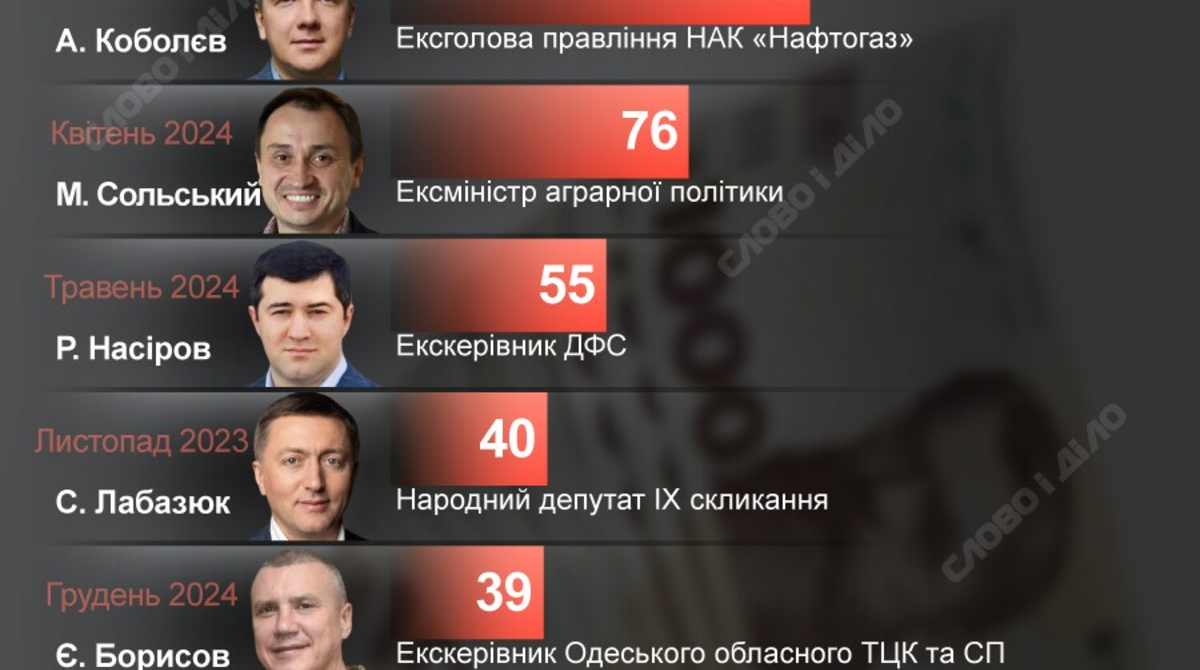 Рекордною сумою застави серед фігурантів гучних справ на сьогоднішній день є понад 270 млн грн, внесених за колишнього депутата Сергія Пашинського. Далі була застава у 200 млн грн за бізнесмена Германа Фісталя. А у випадку справ Олексія Чернишова, Андрія Коболєва та Бориса Кауфмана розмір внесеної застави перевищив 100 млн грн. «Слово і діло» склало рейтинг найбільших застав, внесених за резонансних фігурантів справ у 2022-2025 роках.