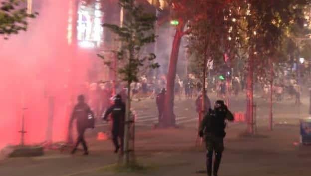 У Белграді сотні протестувальників та прихильників SNS кидали один в одного фаєри та петарди на одному з головних проспектів міста. Поліція змушена була застосувати сльозогінний газ і розігнати учасників акції.