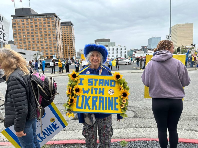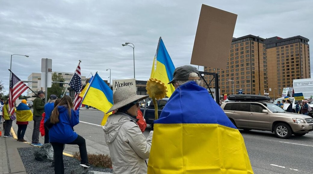 В Анкориджі проживає близько тисячі українців, які переїхали після початку повномасштабного вторгнення росії. На мітинг також вийшли американці, які виступають за те, щоб Аляска ніколи більше не була російською.
