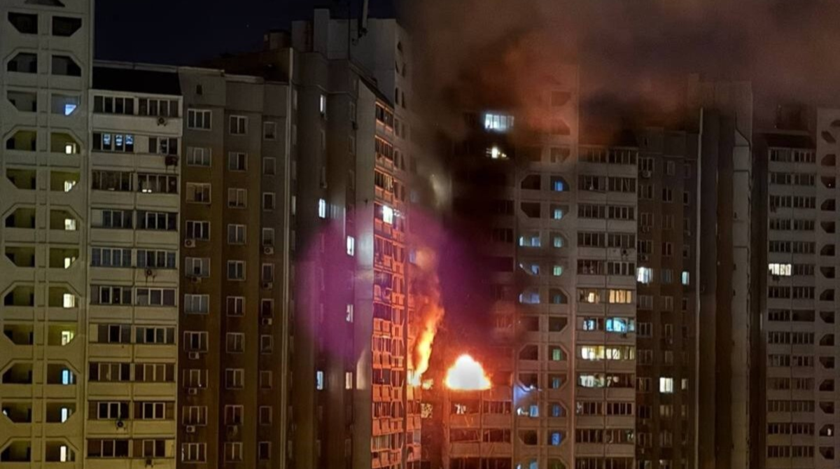 У Дніпровському районі серйозно постраждала 25-поверхівка, безпілотник впав біля дев’ятиповерхового будинку, що спричинило пожежу. Десятки машин згоріли або пошкоджені у кількох місцях.
