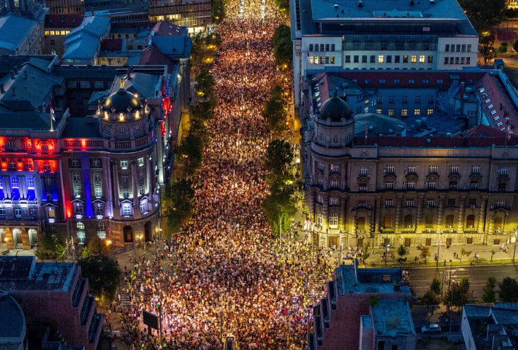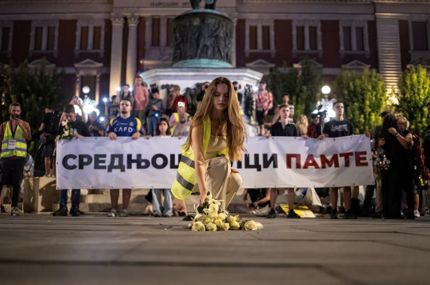 Як зазначається, десятки тисяч людей пройшли мовчазною ходою в столиці Сербії, щоб ушанувати пам’ять 16 загиблих під час обвалу даху на відремонтованому залізничному вокзалі в Новому Саді у листопаді 2024 року. Трагедія спричинила хвилю звинувачень у корупції та недбалості, а нині протестувальники вимагають дострокових виборів, аби усунути від влади президента Александра Вучича та його партію СНС.