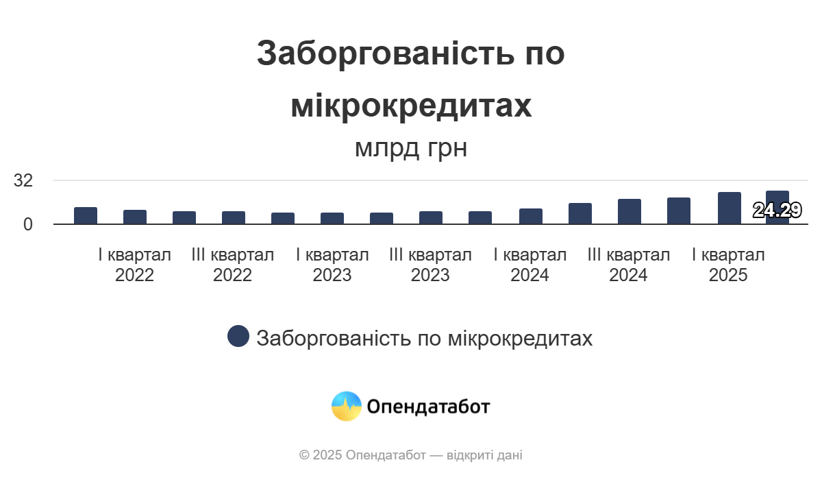 Загалом у 2025 році українці вже набрали мікрокредитів на 26,44 млрд грн (4,39 млн договорів) – на 8% більше, ніж за такий самий період торік.