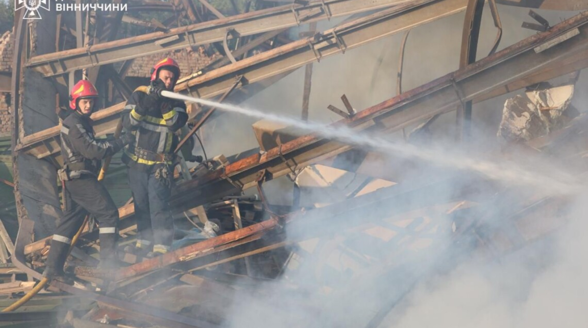 «У Вінниці рятувальники ліквідували загоряння на об’єкті промислової інфраструктури, що виникло внаслідок російського обстрілу. Наразі розбирають конструкції зруйнованої будівлі», – зазначили у ДСНС.