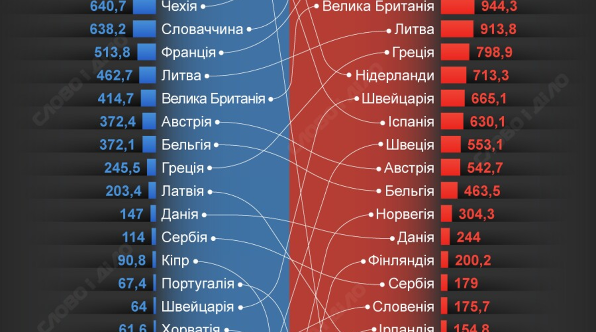 Україна за вісім місяців цього року імпортувала товарів на загальну суму 52,6 млрд доларів, а експортувала – на 26,4 млрд. Найчастіше українці купували товари у Польщі, Німеччини та Італії. Ці ж самі країни лідирують у переліку тих, кому Україна продавала власні товари та продукцію. «Слово і діло» вирішило показати на інфографіці, як Україна торгувала з країнами Європи цього року.