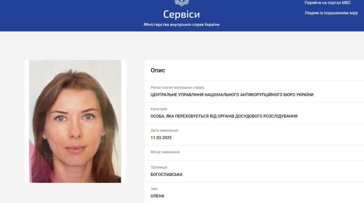 Вищий антикорупційний суд не скасував повідомлення про підозру, вручене менеджерці бізнесмена Дениса Комарницького Олені Богославській. НАБУ і САП розшукують її у його земельній справі.