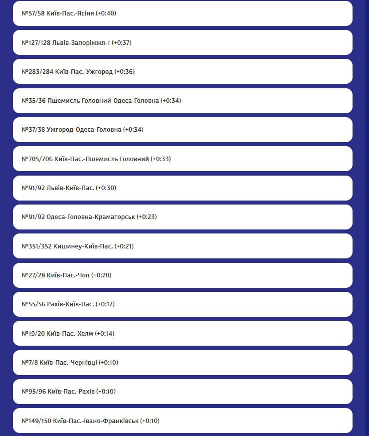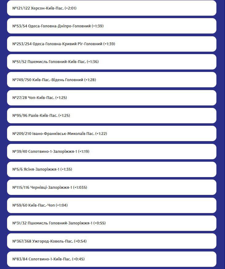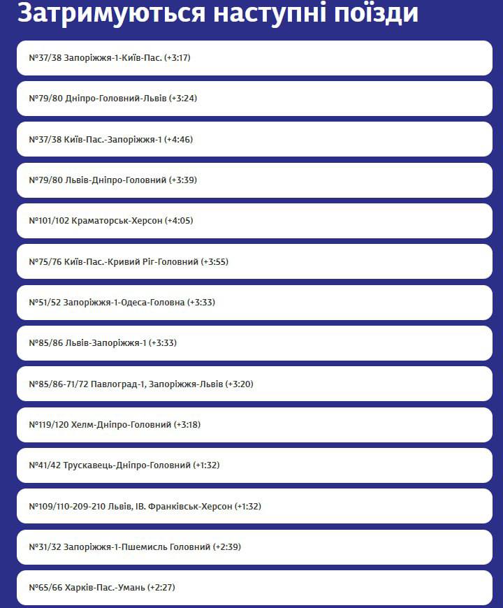 На сайтi УЗ опублiкували перелiк потягiв, якi зaтримуються внaслiдок атаки.