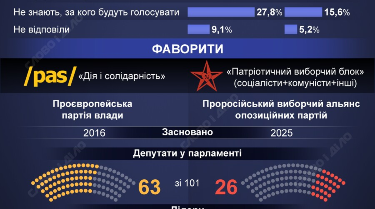 Другий фаворит недільних виборів – проросійський «Патріотичний виборчий блок» під керівництвом колишнього президента Ігоря Додона, відомого близькими відносинами з Кремлем. Нині партія має 26 зі 101 депутата в парламенті.
