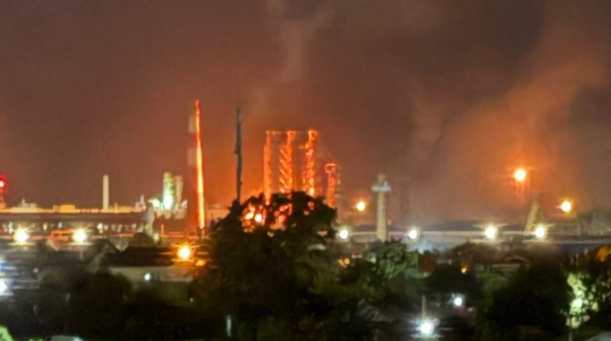 У соцмережах повідомляють, що загоряння сталося на одній з установок первинної переробки нафти.
