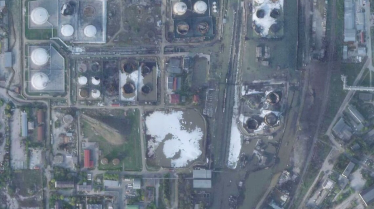 ЗМІ опублікували нові супутникові знімки нафтопереробного заводу у Феодосії. Згідно з ними, внаслідок двох ударів дронів, 7 і 13 жовтня, 11 резервуарів із пальним були повністю знищені.