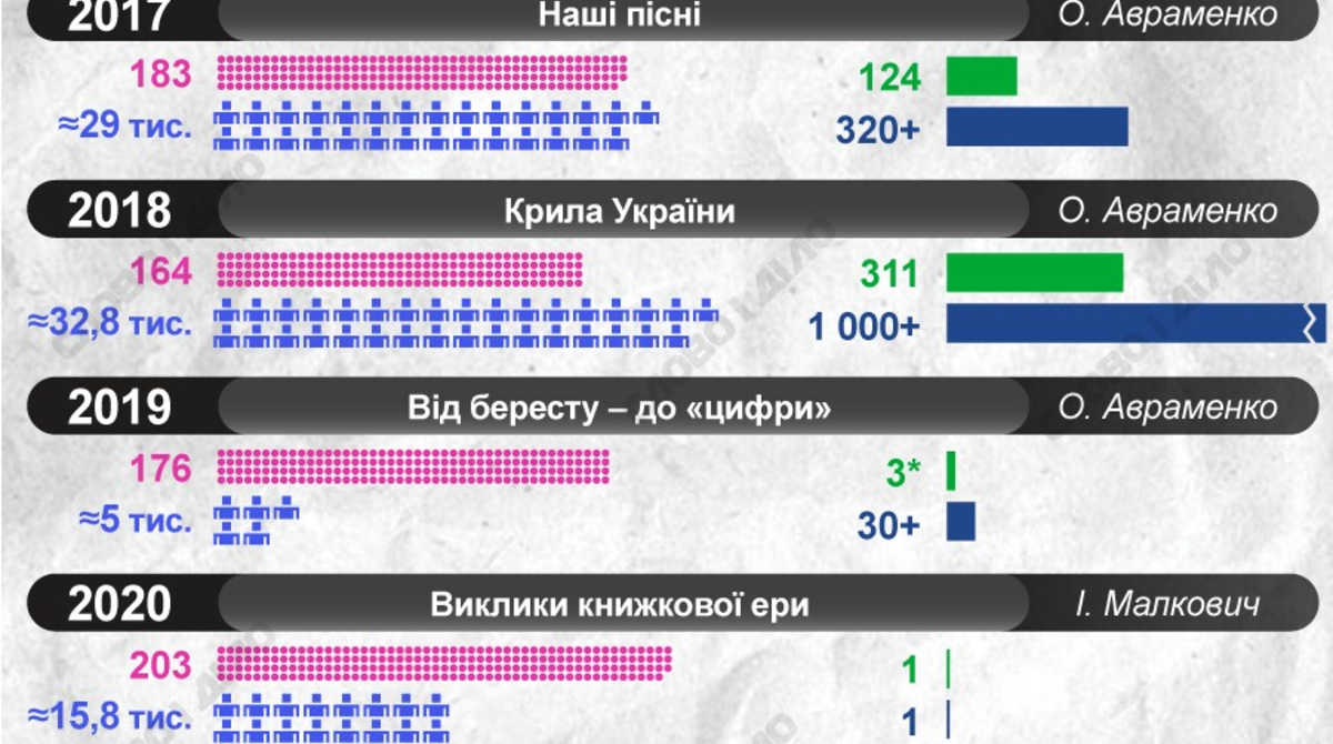 У жовтні українці вже традиційно приєдналися до написання Всеукраїнського радіодиктанту національної єдності. Акцію проводять щороку до Дня української писемності та мови, цього року – 27 жовтня. Авторкою тексту «Треба жити» стала письменниця Євгенія Кузнєцова, а дикторкою — акторка Наталія Сумська. Результати цьогорічного, 25-го за рахунком, радіодиктанту оголосять, коли комісія опрацює всі листи. «Слово і діло» пропонує згадати, скільки українців надсилали свої диктанти на перевірку і скільки було «відмінників» з 2015 по 2025 рік.