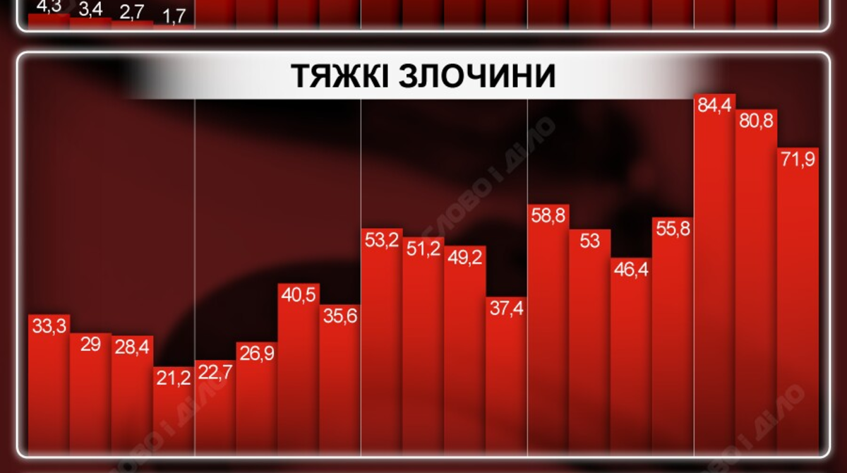 В Україні можуть посилити кримінальну відповідальність за особливо тяжкі злочини проти дітей, зокрема за вбивство та зґвалтування, вводячи безальтернативне довічне позбавлення волі. З такою пропозицією до комітету Верховної ради з питань правоохоронної діяльності звернувся Генеральний прокурор Руслан Кравченко. За даними Офісу генпрокурора, за роки повномасштабної війни в Україні зросла кількість тяжких та особливо тяжких злочинів, водночас менше стали фіксувати нетяжких. «Слово і діло» вирішило проаналізувати, як змінювалася кількість кримінальних правопорушень в Україні з 2021 по 2025 рік.