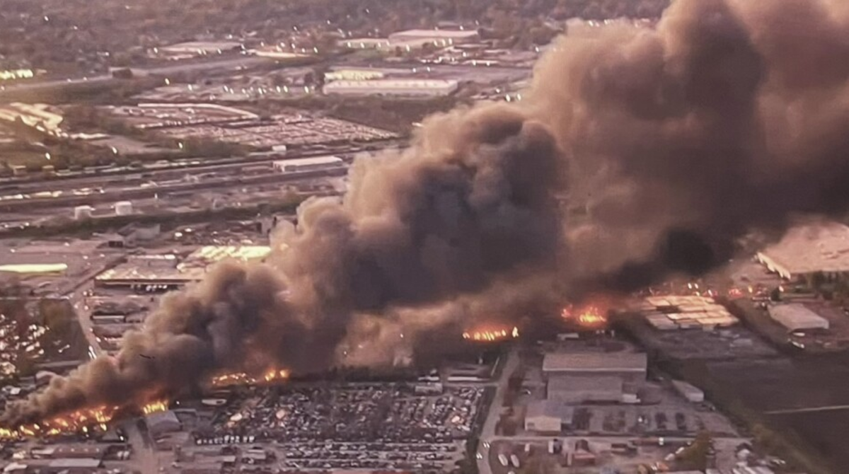 Величезний стовп токсичного диму змусив владу закликати мешканців у радіусі кількох миль прослідувати до укриттів.