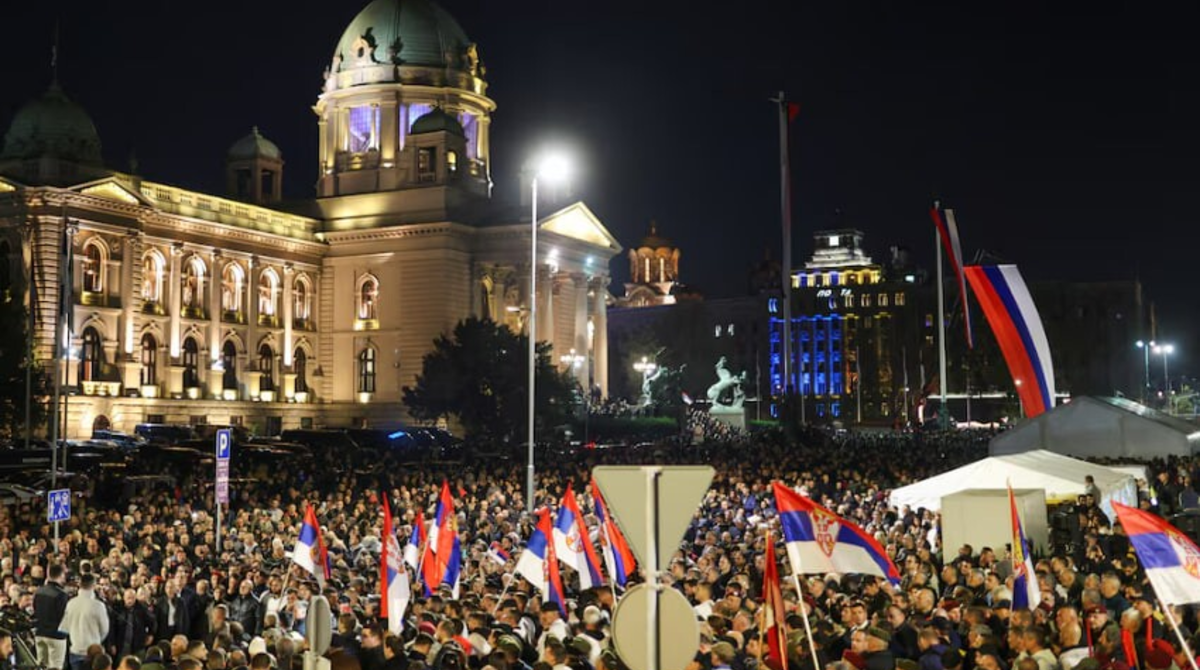 У столиці Сербії Белграді понад 10 тисяч прихильників президента Олександра Вучича вийшли на мітинг на підтримку політики популістського лідера після року антиурядових протестів.