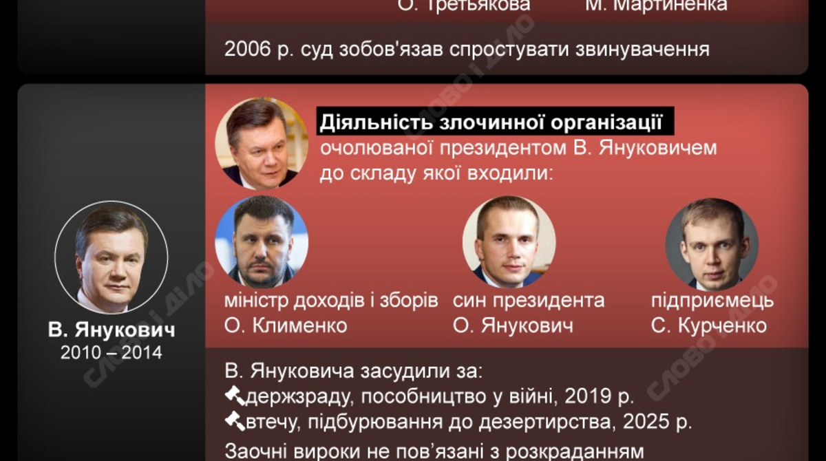 У грудні 2022 року справу проти Курченка направили в суд. Сам Янукович, який втік до росії, має два заочних судових вироки, не пов’язані з розкраданням грошей: за держзраду, пособництво у війні (2019 рік) та за втечу, підбурювання до дезертирства (2025 рік).