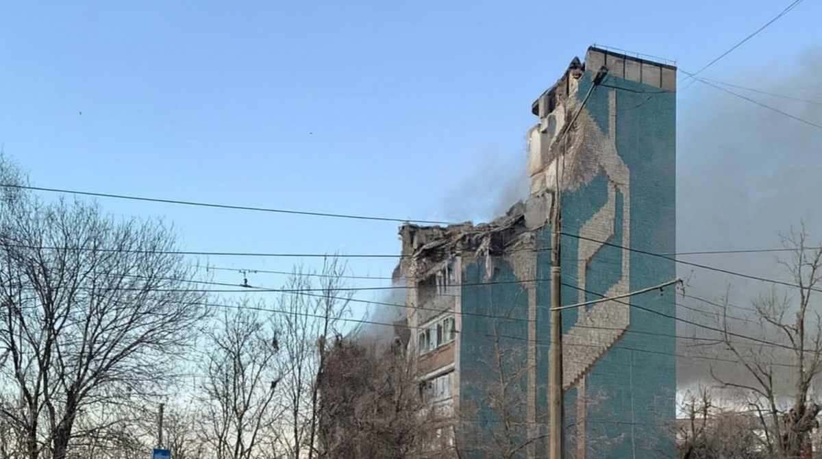 За даними з соцмереж, росіяни влучили по багатоповерхівці. Внаслідок атаки зруйнована половина будівлі, також спалахнула пожежа.