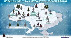 Новий рік-2026: у яких обласних центрах будуть головні ялинкиУ Києві, Дніпрі, Житомирі, Харкові, Запоріжжі, Ужгороді, Івано-Франківську, Львові, Одесі, Полтаві, Кропивницькому, Рівному, Черкасах, Чернівцях встановили ялинку до Нового року. У яких містах прикрасять ялинки, що ростуть на вулиці, а де їх не буде зовсім – на інфографіці.