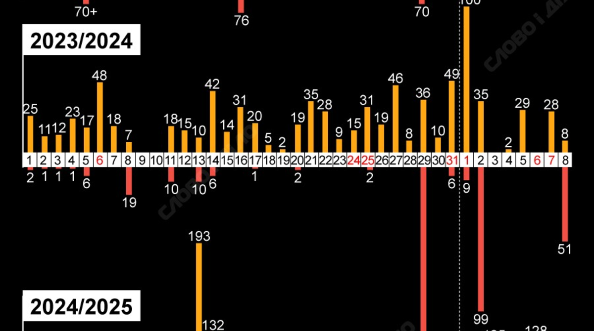 На Різдво, яке відзначатимуть вже за тиждень, перемир'я на фронті, швидше за все, очікувати не варто. Попри те, що Україна погодилася підтримати припинення вогню на період зимових свят, цю ідею відкинули у Кремлі. Не припиняли ракетно-дронові удари росіяни й у попередні роки великої війни – на Святвечір, Різдво та Новий рік. Найбільше обстрілів під час зимових свят мирні міста України зазнали у грудні 2024- та січні 2025 року. Детальніше – на інфографіці.