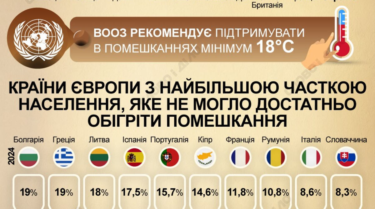 ВООЗ рекомендує підтримувати в помешканнях мінімум 18°C. Цієї рекомендації, зазвичай, радить дотримуватися влада в Україні та Франції.