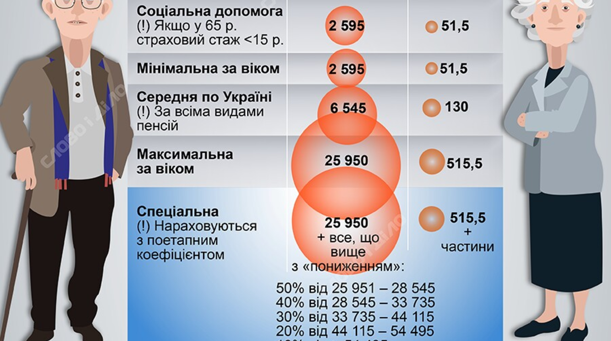 Окрему категорію становлять спецпенсії. У 2026 році уряд впровадив механізм «пониження» для надвисоких виплат. Все, що перевищує поріг у ₴25 950, нараховується за поетапним коефіцієнтом: від 50% для суми до ₴28 545 і аж до 10% для сум, що перевищують ₴54 495.