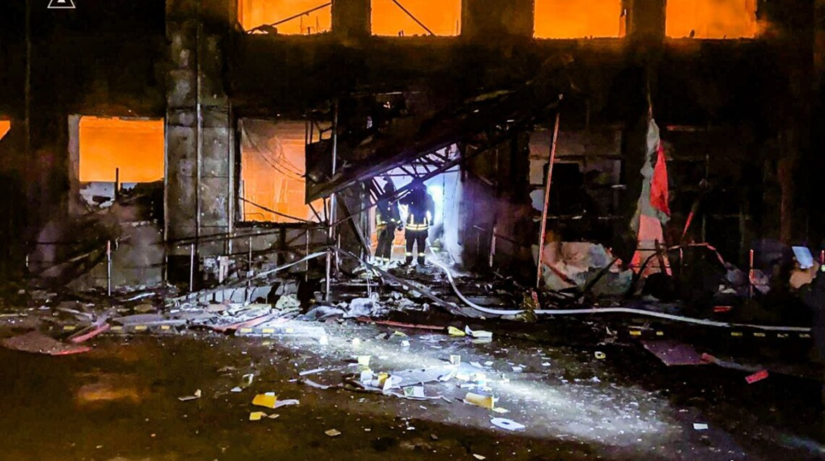 Як зазначається, у результаті влучання у двоповерхову будівлю магазину сталися руйнації та пожежа на площі понад 1500 кв. м.