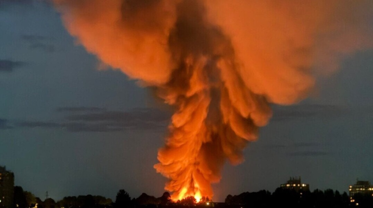 У Краснодарському краї росії, у селищі Волна, уночі 15 лютого, загорівся резервуар, де зберігають нафтопродукти.