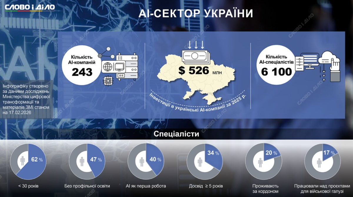 За понад два роки кількість українських ШІ-фахівців зросла на 17% — зараз це 6 100 спеціалістів. Половина з них працює в індустрії понад три роки, 34% – з досвідом понад п'яти років. Також у сфері українського ШІ працює близько тисячі жінок, 17% з них — новачки.