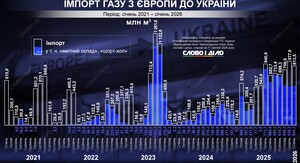Як змінювався обсяг імпорту європейського газу Україною за 5 роківНа інфографіці – скільки газу Україна імпортувала із країн Євросоюзу та Молдови з січня 2021 року до лютого 2026-го.