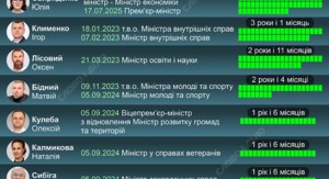 Хто з міністрів працює в Кабміні найдовшеКабмін 2026. Як довго чинні урядовці входять до складу українських урядів – на інфографіці Слово і діло.