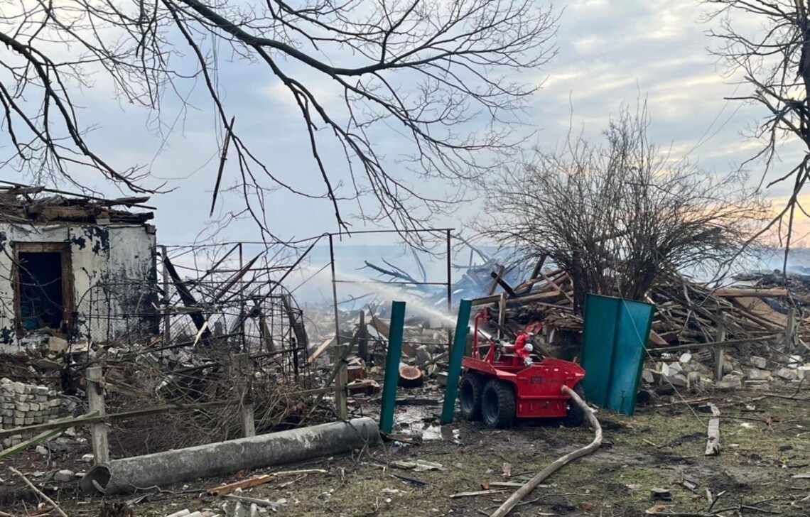 «Через високу небезпеку для рятувальників до гасіння залучили роботизований комплекс «Змій пожежний». Сапери ДСНС працювали на місці, обстежуючи територію на наявність вибухонебезпечних предметів», – йдеться у повідомленні.
