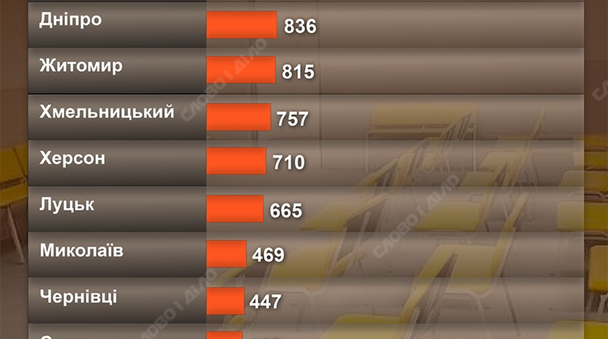 Найменша кількість укриттів серед обласних центрів – у Вінниці та Івано-Франківську, чиї області розташовані у нижній частині рейтингу тривалості повітряних тривог. Ці два міста мають 272 і 123 укриття відповідно.