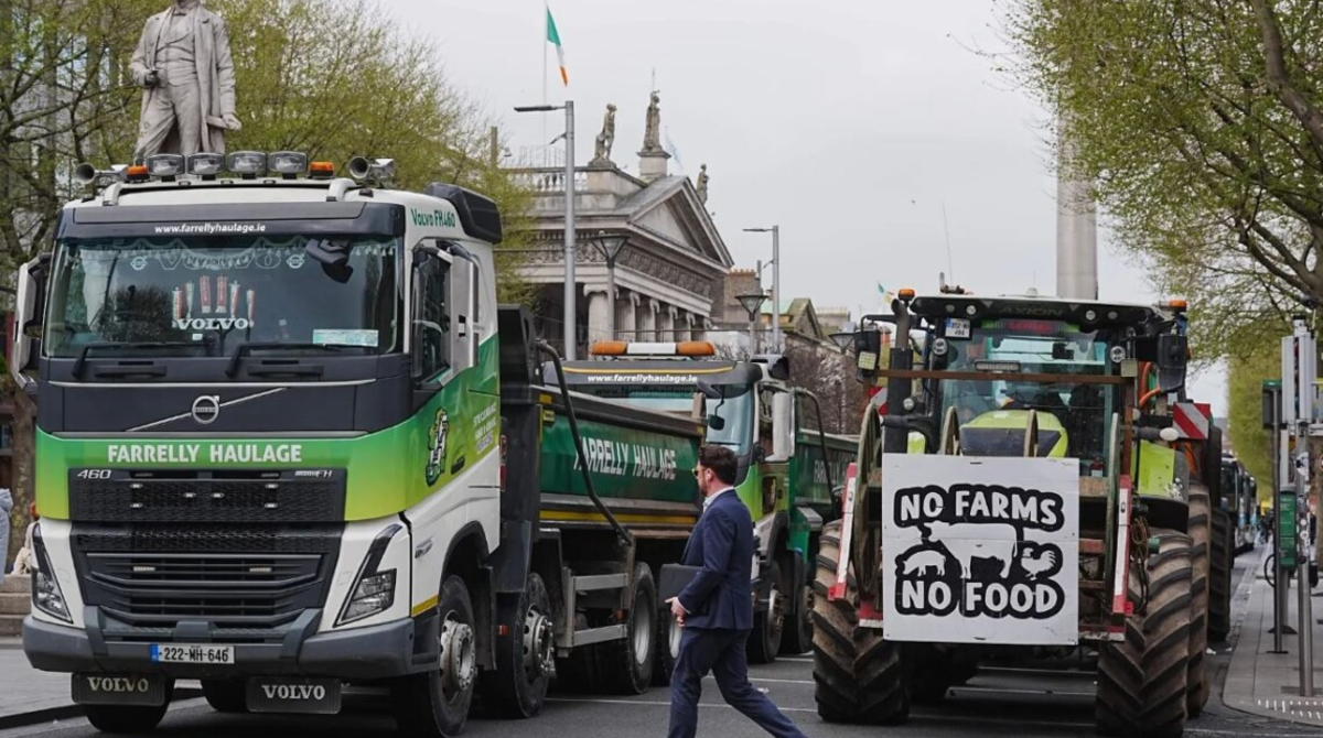 Повідомляється, що вантажівки й трактори блокують ключову магістраль уже третій день поспіль. По всій Ірландії протестувальники перекривають паливні термінали та зупиняють рух на дорогах, вимагаючи від уряду нових рішень та вигіднішого пакету підтримки.