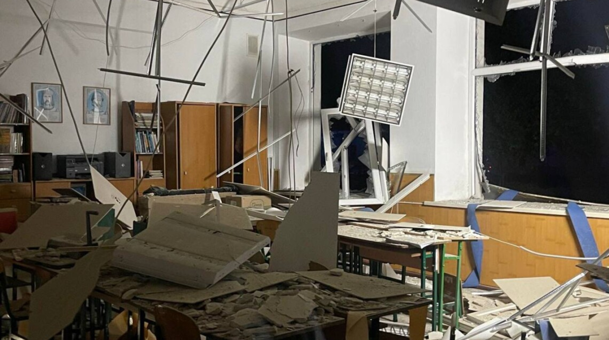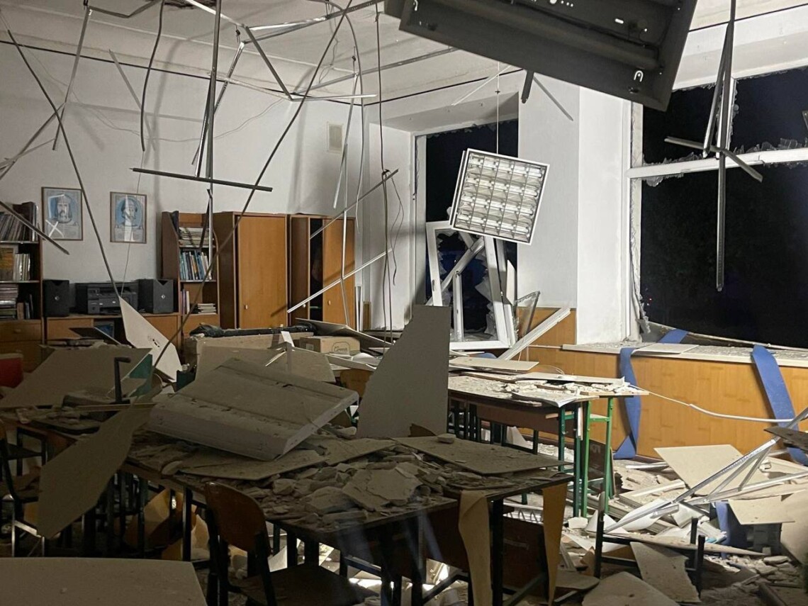 Сергій Лисак уточнив, що внаслідок атаки пошкоджено навчальний заклад та показав фото одного із понівечених кабінетів.