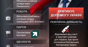Проросійський генерал: що відомо про майбутнього прем’єра Болгарії Румена РадеваНа парламентських виборах у Болгарії перемогли партія експрезидента Румена Радева. Що відомо про нового прем'єр-міністра Болгарії – на інфографіці.