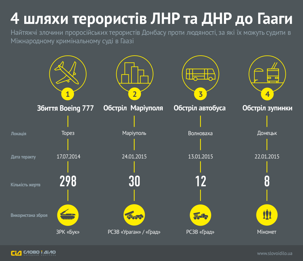 «Від імені українського народу Верховна Рада України... звертається до Міжнародного кримінального суду з метою притягнення до кримінальної відповідальності у Міжнародному кримінальному суді щодо передбачених статтею 7 та статтею 8 Римського статуту Міжнародного кримінального суду злочинів проти людяності, військових злочинів вчинених на території України починаючи з 20 лютого 2014 року і по теперішній час, вищих посадових осіб Російської Федерації та інших осіб, яких визначить прокурор Міжнародного кримінального суду», – йдеться у заяві.